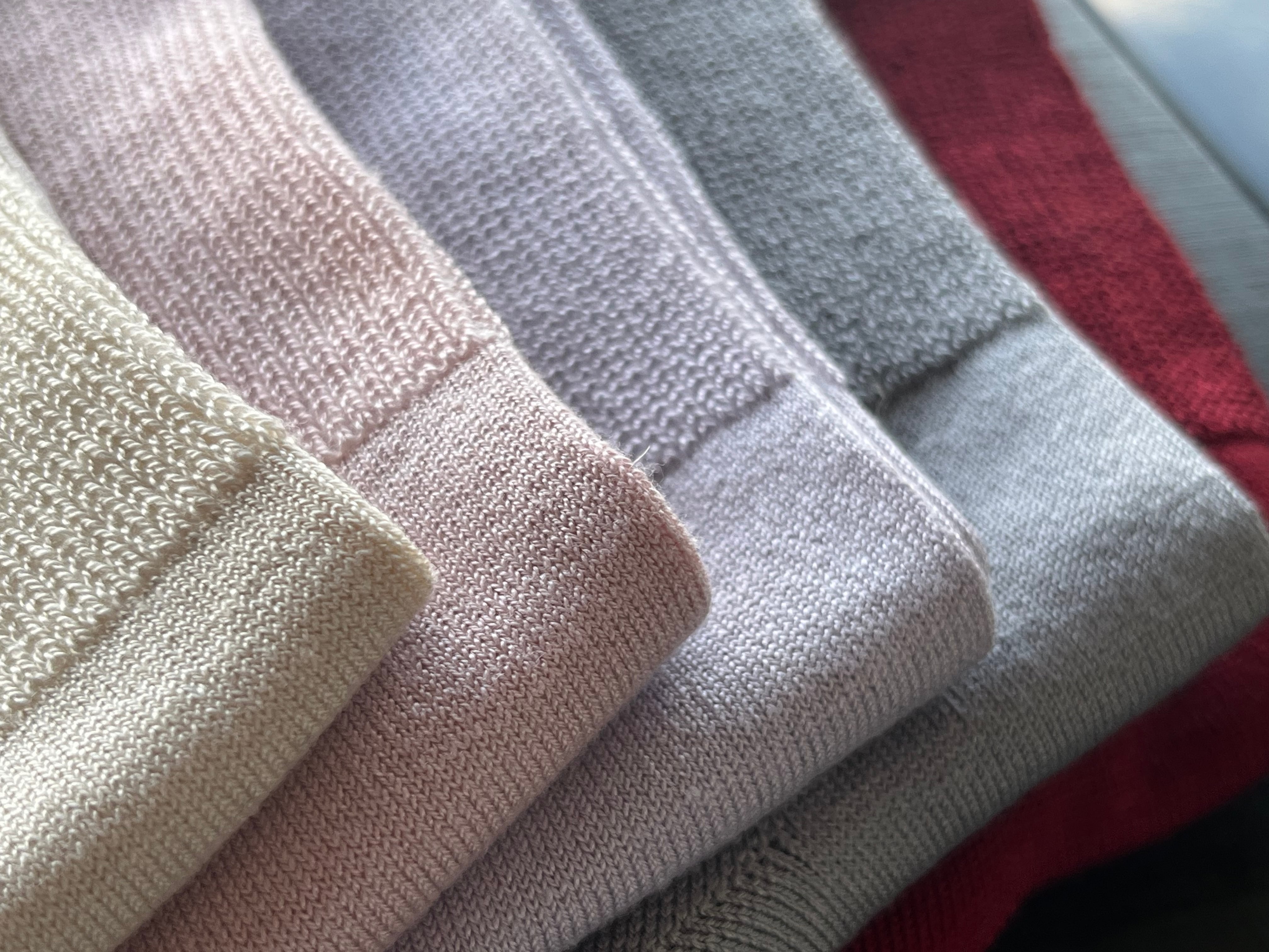 当サイトの商品は、100年以上シルクと向き合ってきた当社だからこそできる、商品ごとに合わせた糸と編み方を厳選しています。