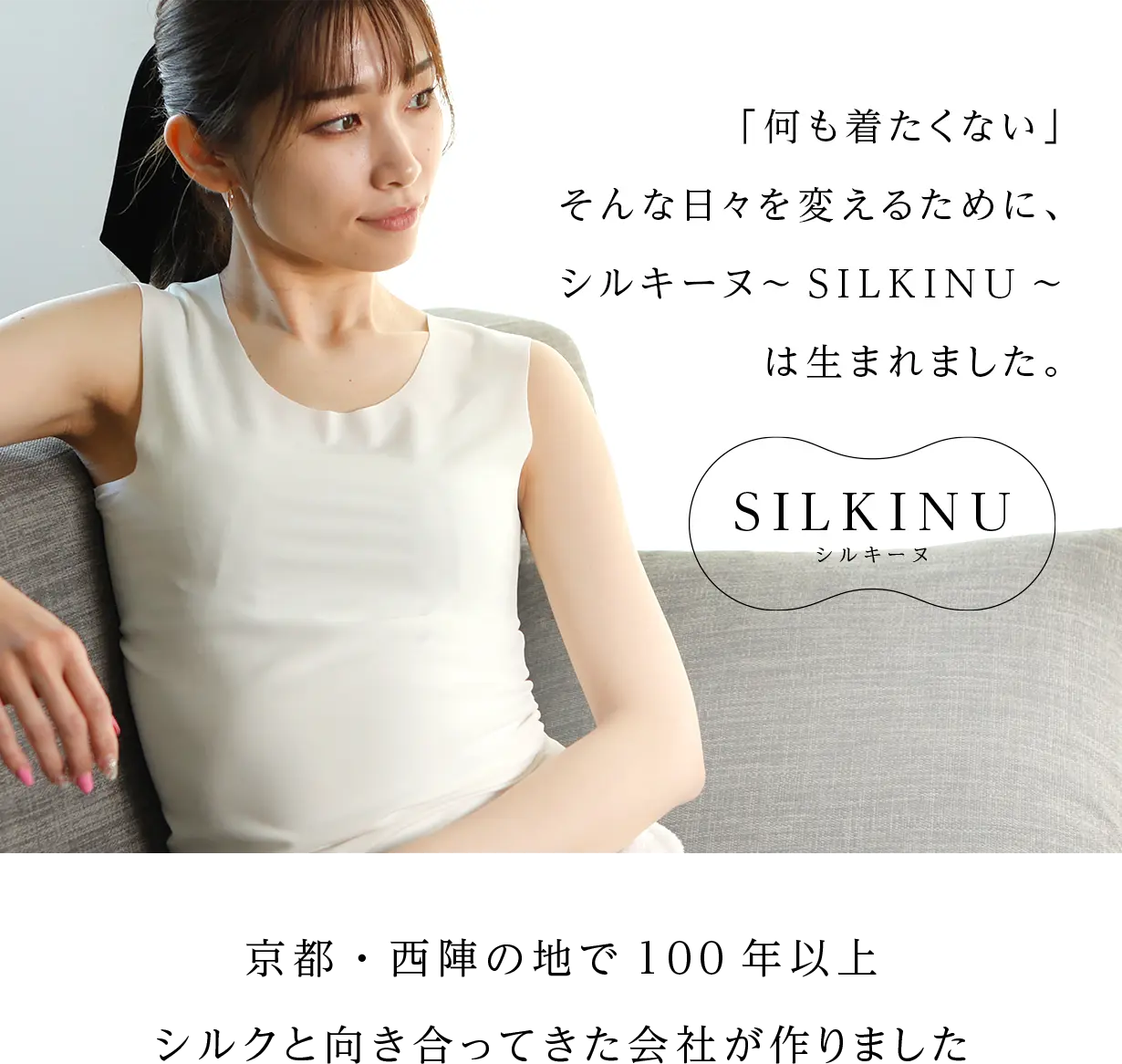 クラウドファンディングで大人気を博した、敏感肌の方と共同開発したお肌のための特別なシルクインナー【シルキーヌ】。