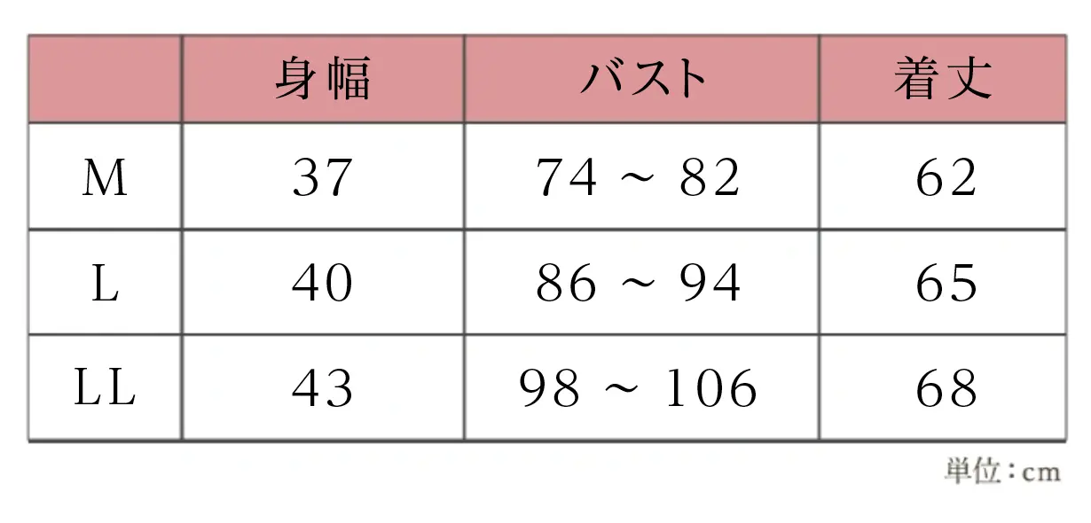 L ⇒ ゆったり着たい方、ゆとりがあるのがお好きな方におすすめ