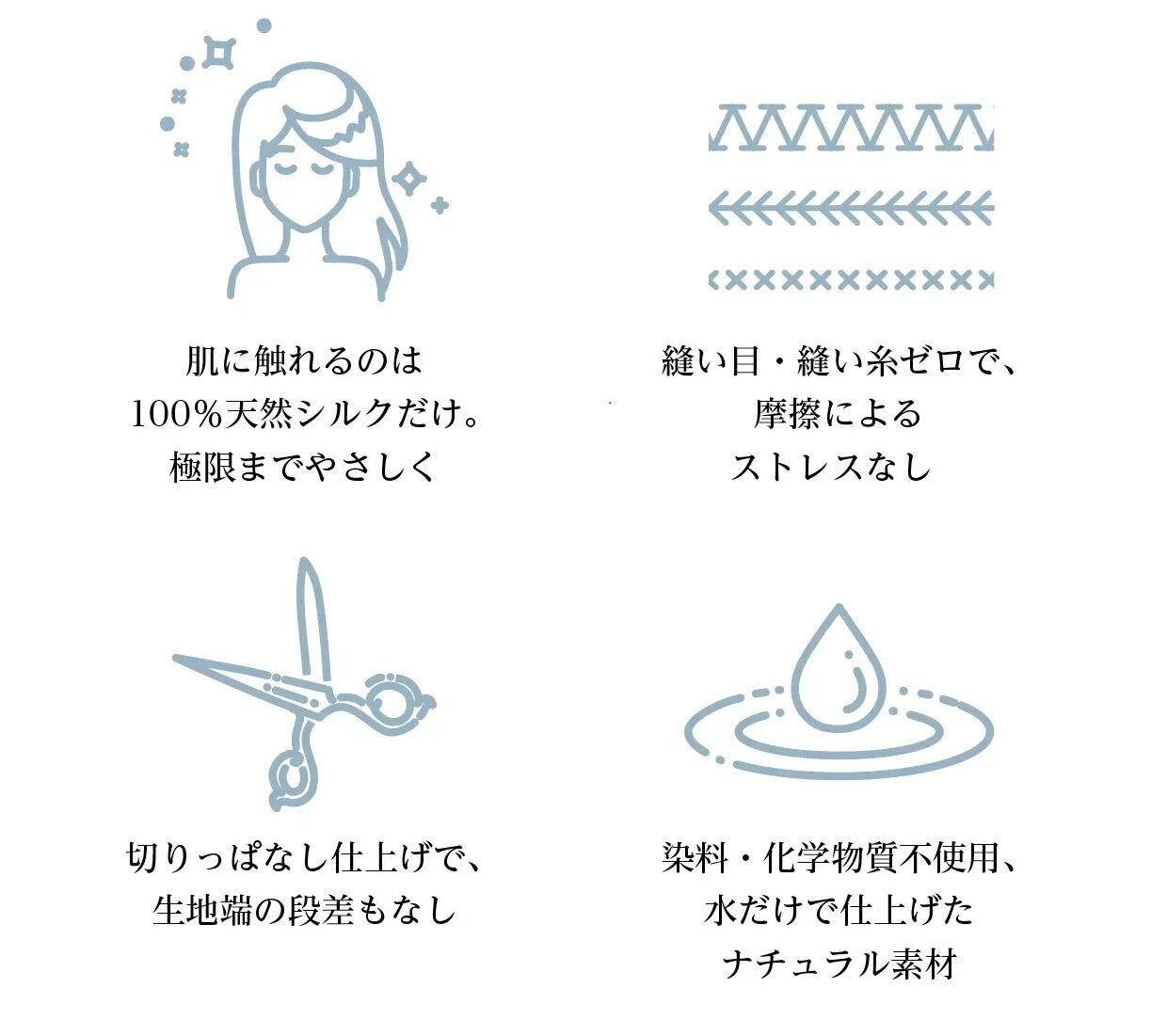 【絹のやさしさ】染料や化学物質を使わず、水だけで仕上げたお肌に安心・安全な生地を使用